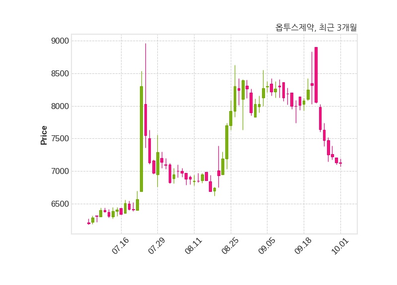 한편, 옵투스제약의 15시 05분 현재주가는 7,120원으로 직전 거래일 대비 10원(-0.14%) 하락이며, 거래량은 29,026주이다.