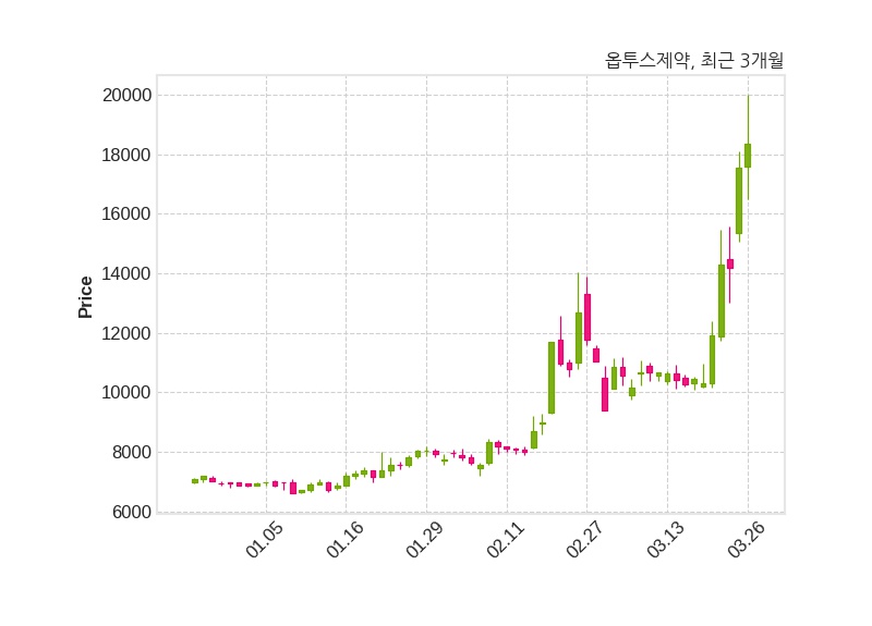 한편, 옵투스제약은 장 마감 이후 해당 기업공시를 발표했으며 오늘 종가가 18,370원, 거래량은 1,922,301주로, 직전 거래일 대비 830원(+4.73%) 상승했다.