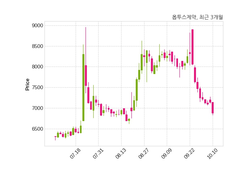 옵투스제약은 특별관계자 한국증권금융의 지분율이 4.03%에서 4.89%로 변동했다고 10일 공시했다. 한편, 옵투스제약의 13시 17분 현재주가는 6,880원으로 직전 거래일 대비 260원(-3.64%) 하락이며, 거래량은 78,851주이다.