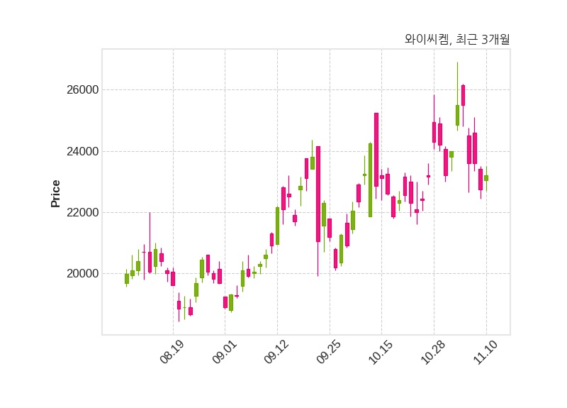 와이씨켐은 특별관계자 케이앤투자파트너스의 지분율이 4.49%에서 7.06%로 변동했다고 10일 공시했다. 한편, 와이씨켐은 장 마감 이후 해당 기업공시를 발표했으며 오늘 종가가 23,200원, 거래량은 55,340주로, 직전 거래일 대비 450원(+1.98%) 상승했다.