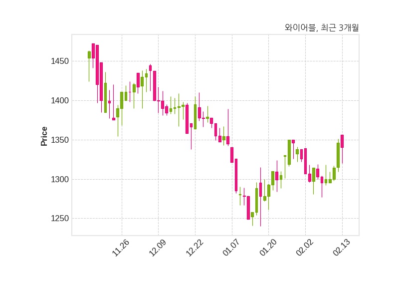 한편, 와이어블은 장 마감 이후 해당 기업공시를 발표했으며 오늘 종가가 1,340원, 거래량은 87,927주로, 직전 거래일 대비 6원(-0.45%) 하락했다.