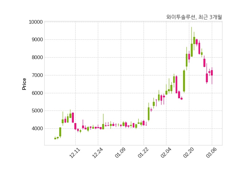 한편, 와이투솔루션은 장 마감 이후 해당 기업공시를 발표했으며 오늘 종가가 6,990원, 거래량은 1,299,149주로, 직전 거래일 대비 160원(-2.24%) 하락했다.