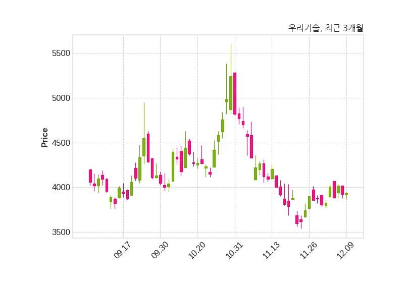한편, 우리기술의 10시 27분 현재주가는 3,935원으로 직전 거래일 대비 10원(+0.25%) 상승이며, 거래량은 826,544주이다.