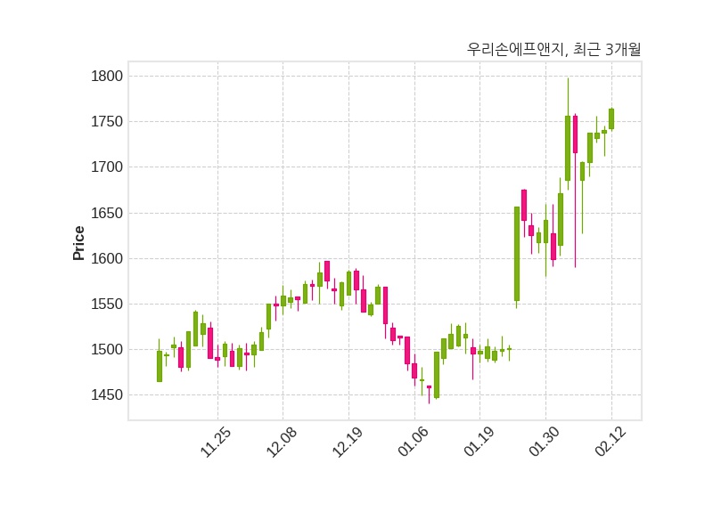 한편, 우리손에프앤지는 장 마감 이후 해당 기업공시를 발표했으며 오늘 종가가 1,764원, 거래량은 155,792주로, 직전 거래일 대비 23원(+1.32%) 상승했다.