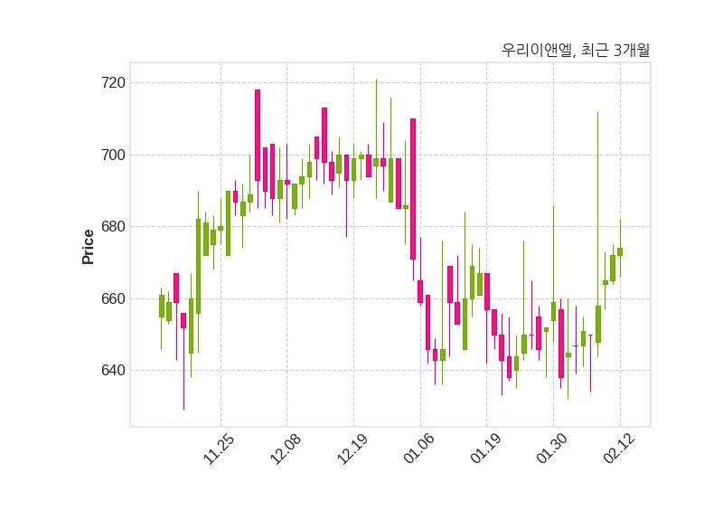 한편, 우리이앤엘은 장 마감 이후 해당 기업공시를 발표했으며 오늘 종가가 674원, 거래량은 73,392주로, 직전 거래일 대비 2원(+0.3%) 상승했다.