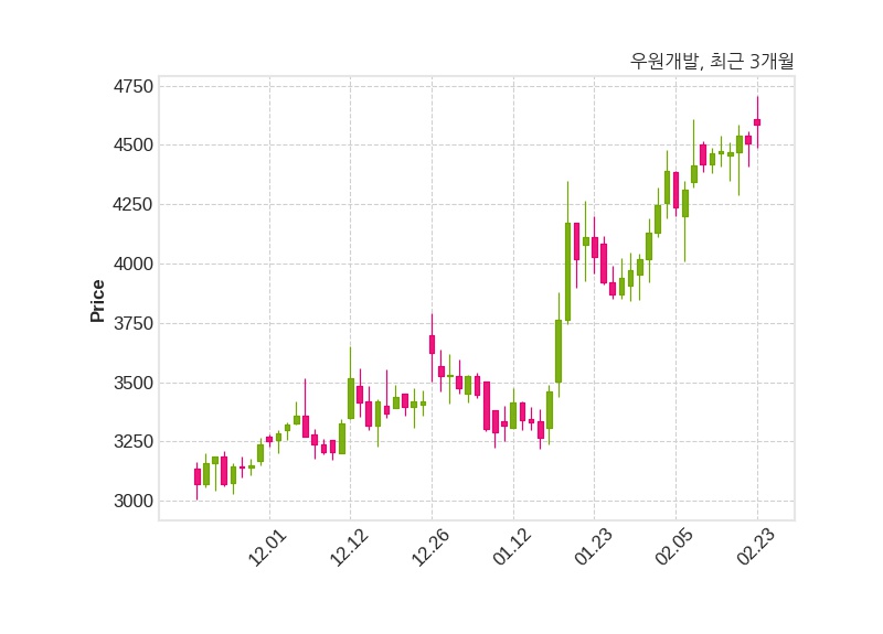 한편, 우원개발의 15시 29분 현재주가는 4,585원으로 직전 거래일 대비 80원(+1.78%) 상승이며, 거래량은 300,515주이다.