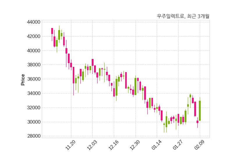 한편, 우주일렉트로는 장 마감 이후 해당 기업공시를 발표했으며 오늘 종가가 32,950원, 거래량은 24,929주로, 직전 거래일 대비 3,100원(+10.39%) 상승했다.
