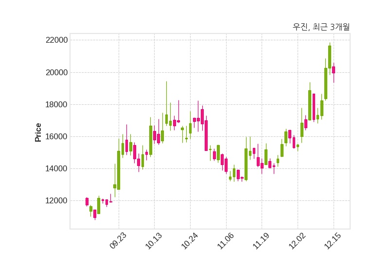한편, 우진은 장 마감 이후 해당 기업공시를 발표했으며 오늘 종가가 19,960원, 거래량은 1,798,225주로, 직전 거래일 대비 1,690원(-7.81%) 하락했다.