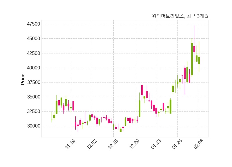 원익머트리얼즈는 특별관계자 베어링자산운용의 지분율이 8.32%에서 9.4%로 변동했다고 06일 공시했다. 한편, 원익머트리얼즈는 장 마감 이후 해당 기업공시를 발표했으며 오늘 종가가 41,850원, 거래량은 183,527주로, 직전 거래일 대비 250원(-0.59%) 하락했다.