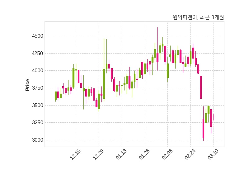 한편, 원익피앤이는 장 마감 이후 해당 기업공시를 발표했으며 오늘 종가가 3,330원, 거래량은 181,502주로, 직전 거래일 대비 140원(+4.39%) 상승했다.
