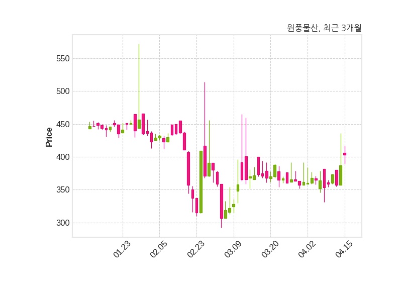 한편, 원풍물산은 장 마감 이후 해당 기업공시를 발표했으며 오늘 종가가 403원, 거래량은 179,445주로, 직전 거래일 대비 16원(+4.13%) 상승했다.