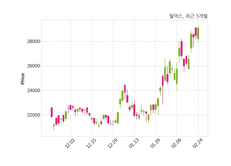한편, 월덱스는 장 마감 이후 해당 기업공시를 발표했으며 오늘 종가가 29,100원, 거래량은 115,601주로, 직전 거래일 대비 650원(+2.28%) 상승했다.