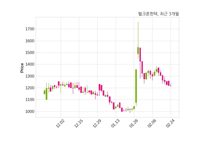한편, 웰크론한텍은 장 마감 이후 해당 기업공시를 발표했으며 오늘 종가가 1,221원, 거래량은 90,749주로, 직전 거래일 대비 변동이없다.