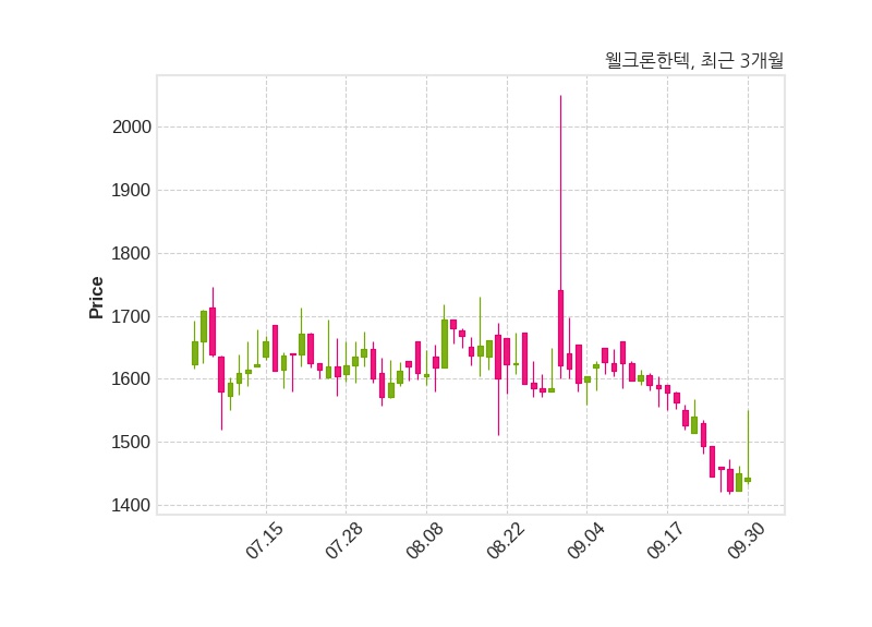 한편, 웰크론한텍은 장 마감 이후 해당 기업공시를 발표했으며 오늘 종가가 1,444원, 거래량은 19,413주로, 직전 거래일 대비 6원(-0.41%) 하락했다.
