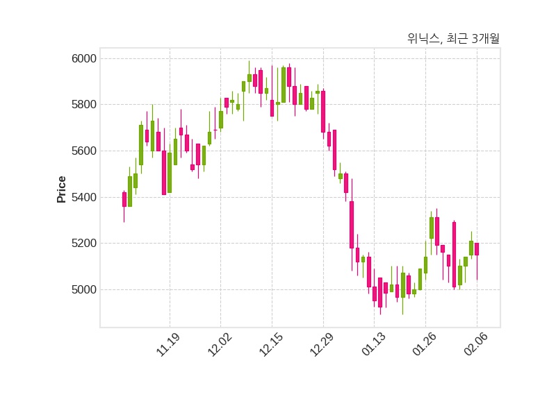 한편, 위닉스는 장 마감 이후 해당 기업공시를 발표했으며 오늘 종가가 5,150원, 거래량은 21,880주로, 직전 거래일 대비 60원(-1.15%) 하락했다.