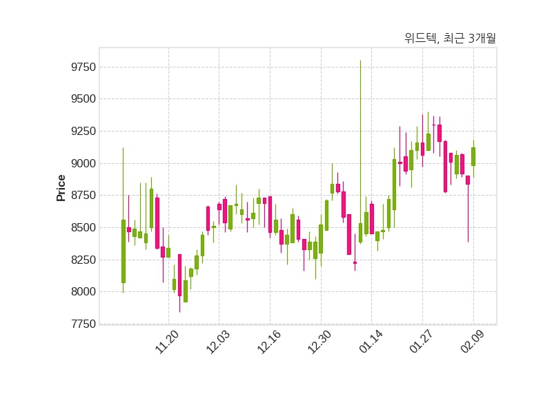 한편, 위드텍은 장 마감 이후 해당 기업공시를 발표했으며 오늘 종가가 9,120원, 거래량은 32,210주로, 직전 거래일 대비 280원(+3.17%) 상승했다.