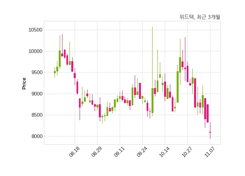 한편, 위드텍의 10시 17분 현재주가는 8,090원으로 직전 거래일 대비 240원(-2.88%) 하락이며, 거래량은 35,042주이다.