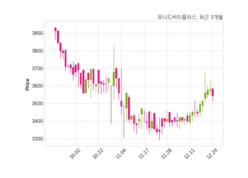 한편, 유니드비티플러스는 장 마감 이후 해당 기업공시를 발표했으며 오늘 종가가 3,545원, 거래량은 12,781주로, 직전 거래일 대비 35원(-0.98%) 하락했다.