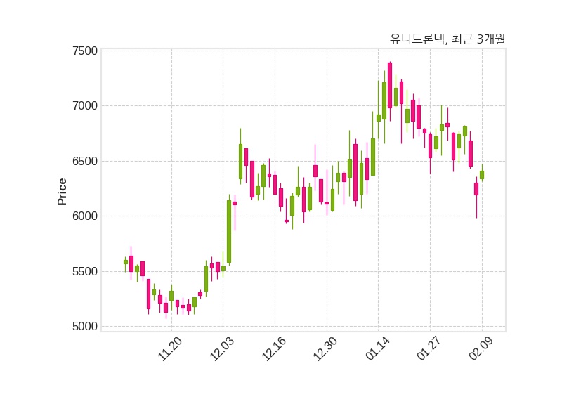 한편, 유니트론텍의 10시 55분 현재주가는 6,410원으로 직전 거래일 대비 220원(+3.55%) 상승이며, 거래량은 158,985주이다.