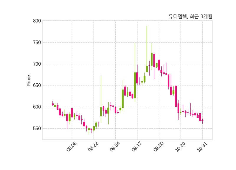 유디엠텍은 특별관계자 왕지남의 지분율이 53.37%에서 55.7%로 변동했다고 31일 공시했다. 한편, 유디엠텍은 장 마감 이후 해당 기업공시를 발표했으며 오늘 종가가 568원, 거래량은 147,769주로, 직전 거래일 대비 변동이없다.