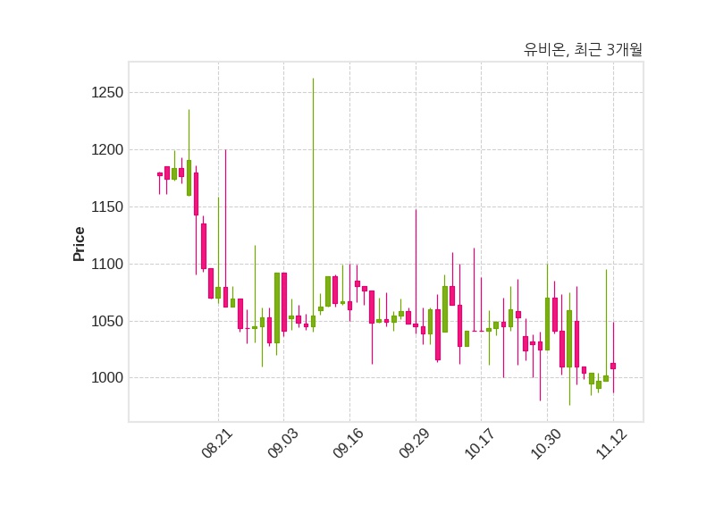 한편, 유비온의 15시 02분 현재주가는 1,008원으로 직전 거래일 대비 6원(+0.6%) 상승이며, 거래량은 11,103주이다.