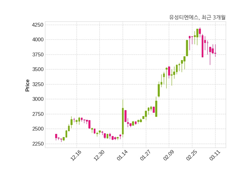 한편, 유성티엔에스는 장 마감 이후 해당 기업공시를 발표했으며 오늘 종가가 3,770원, 거래량은 75,480주로, 직전 거래일 대비 5원(-0.13%) 하락했다.