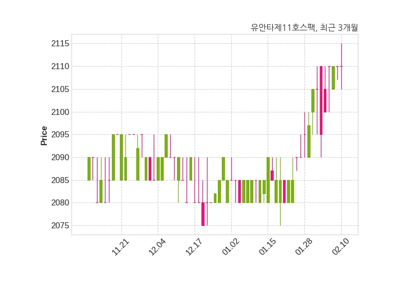 유안타제11호스팩은 특별관계자 한강에셋자산운용의 지분율이 7.97%에서 5.3%로 변동했다고 10일 공시했다. 한편, 유안타제11호스팩의 14시 46분 현재주가는 2,110원으로 직전 거래일 대비 변동없으며, 거래량은 28,704주이다.