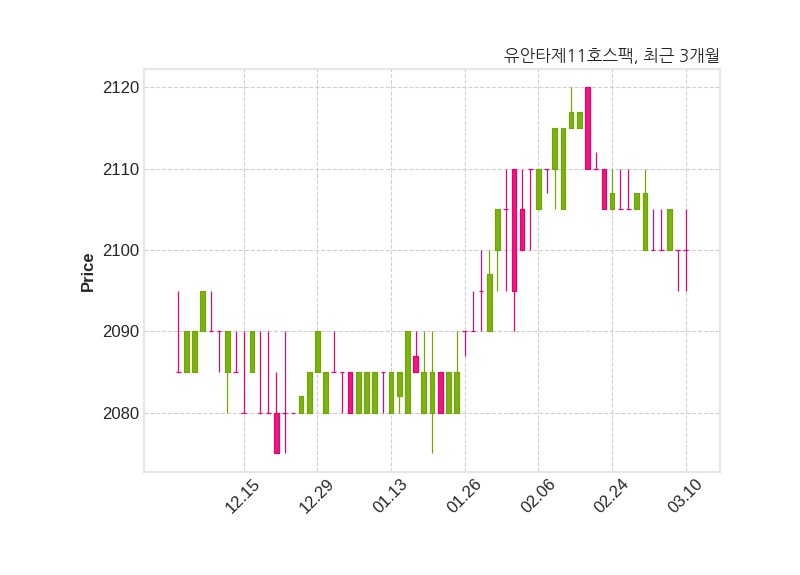 유안타제11호스팩은 특별관계자 한강에셋자산운용의 지분율이 11.95%에서 7.97%로 변동했다고 10일 공시했다. 한편, 유안타제11호스팩은 장 마감 이후 해당 기업공시를 발표했으며 오늘 종가가 2,100원, 거래량은 58,859주로, 직전 거래일 대비 변동이없다.