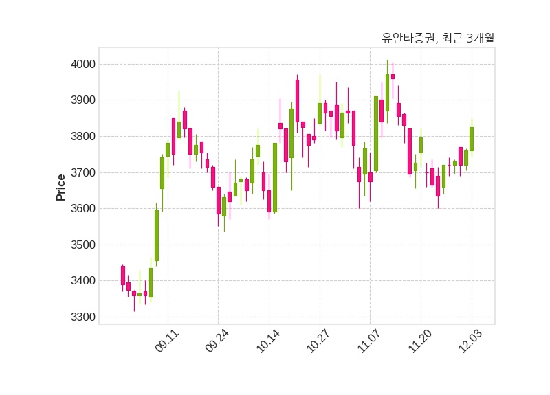 한편, 유안타증권은 장 마감 이후 해당 기업공시를 발표했으며 오늘 종가가 3,825원, 거래량은 380,323주로, 직전 거래일 대비 65원(+1.73%) 상승했다.