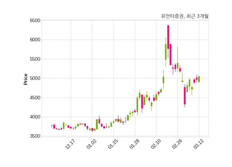 한편, 유안타증권은 장 마감 이후 해당 기업공시를 발표했으며 오늘 종가가 5,050원, 거래량은 457,329주로, 직전 거래일 대비 80원(+1.61%) 상승했다.