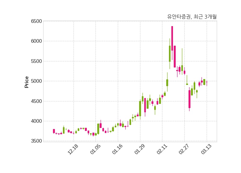 한편, 유안타증권은 장 마감 이후 해당 기업공시를 발표했으며 오늘 종가가 4,980원, 거래량은 503,000주로, 직전 거래일 대비 70원(-1.39%) 하락했다.