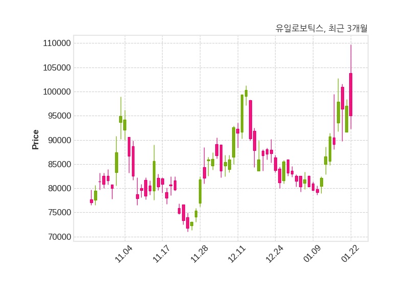 한편, 유일로보틱스는 장 마감 이후 해당 기업공시를 발표했으며 오늘 종가가 95,000원, 거래량은 666,847주로, 직전 거래일 대비 2,000원(-2.06%) 하락했다.