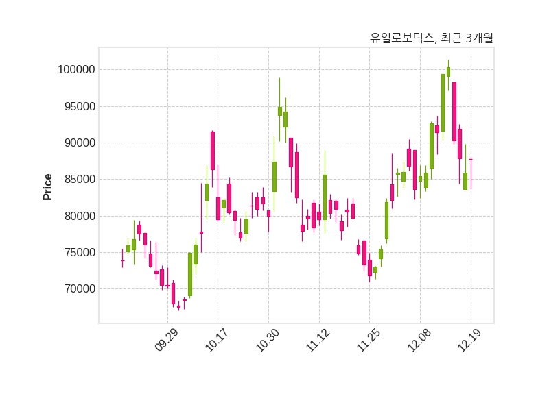 유일로보틱스는 특별관계자 김동헌의 지분율이 48.72%에서 48.8%로 변동했다고 19일 공시했다. 한편, 유일로보틱스의 13시 57분 현재주가는 87,700원으로 직전 거래일 대비 1,800원(+2.1%) 상승이며, 거래량은 136,905주이다.