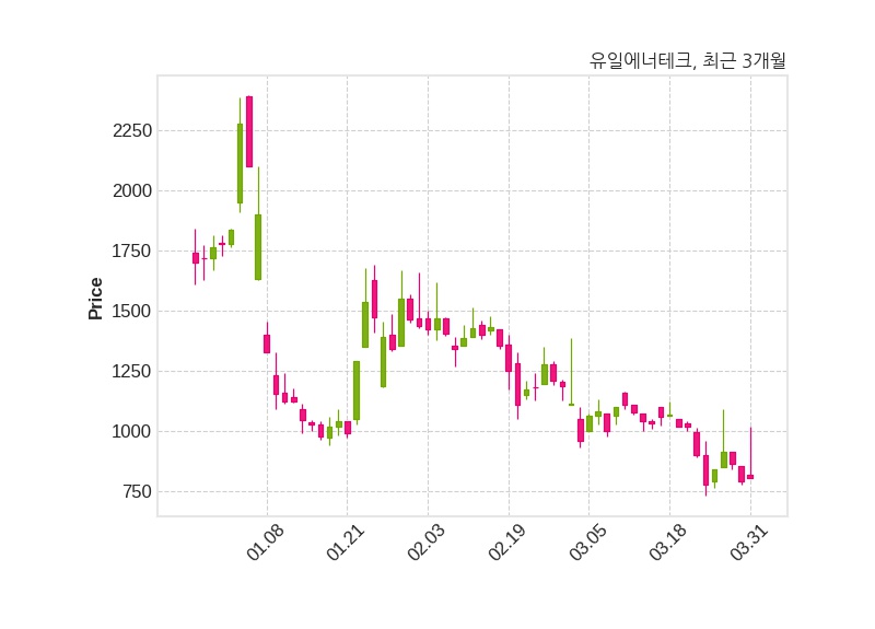 한편, 유일에너테크는 장 마감 이후 해당 기업공시를 발표했으며 오늘 종가가 806원, 거래량은 14,405,070주로, 직전 거래일 대비 13원(+1.64%) 상승했다.