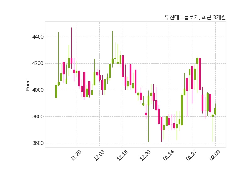 한편, 유진테크놀로지는 장 마감 이후 해당 기업공시를 발표했으며 오늘 종가가 3,865원, 거래량은 21,030주로, 직전 거래일 대비 50원(+1.31%) 상승했다.