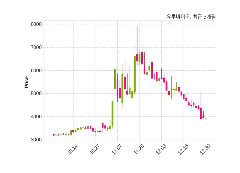 유투바이오는 특별관계자 이재웅의 지분율이 59.05%에서 44.11%로 변동했다고 31일 공시했다. 한편, 유투바이오는 장 마감 이후 해당 기업공시를 발표했으며 오늘 종가가 3,920원, 거래량은 128,179주로, 직전 거래일 대비 20원(-0.51%) 하락했다.
