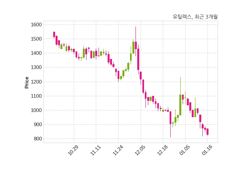 한편, 유틸렉스는 장 마감 이후 해당 기업공시를 발표했으며 오늘 종가가 830원, 거래량은 274,863주로, 직전 거래일 대비 36원(-4.16%) 하락했다.