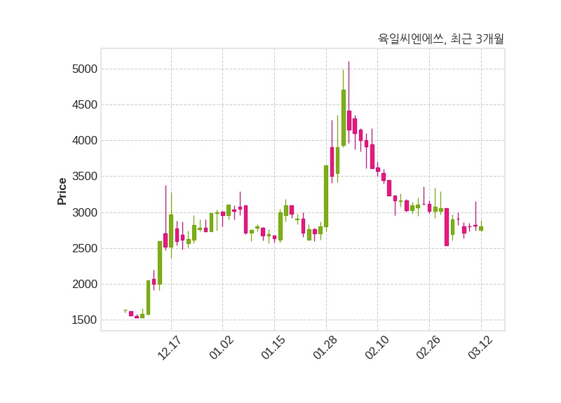 한편, 육일씨엔에쓰의 14시 12분 현재주가는 2,805원으로 직전 거래일 대비 10원(-0.36%) 하락이며, 거래량은 275,600주이다.