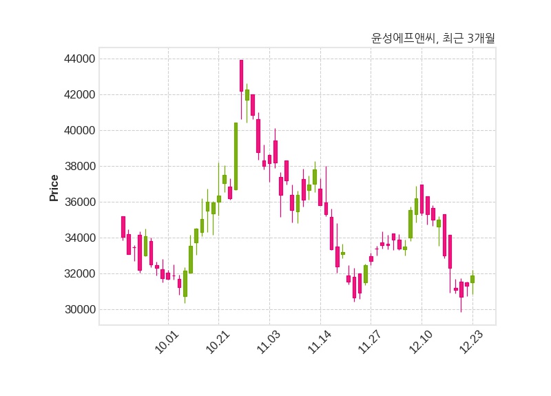 한편, 윤성에프앤씨의 14시 39분 현재주가는 31,900원으로 직전 거래일 대비 600원(+1.92%) 상승이며, 거래량은 10,321주이다.