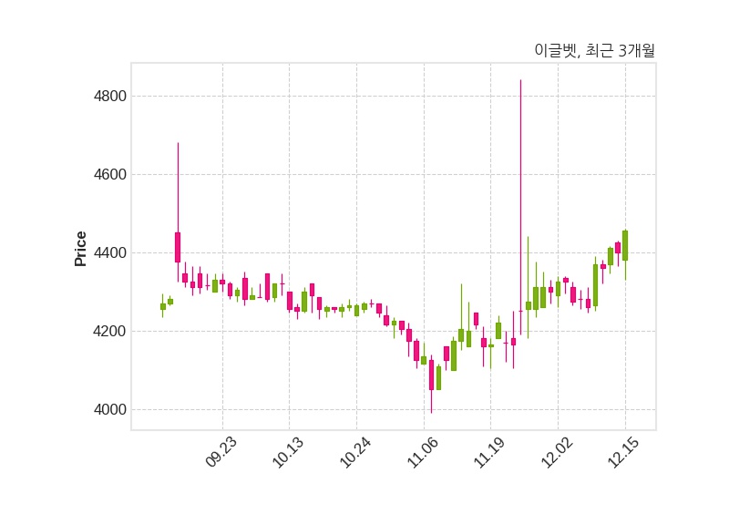 한편, 이글벳은 장 마감 이후 해당 기업공시를 발표했으며 오늘 종가가 4,455원, 거래량은 190,924주로, 직전 거래일 대비 55원(+1.25%) 상승했다.