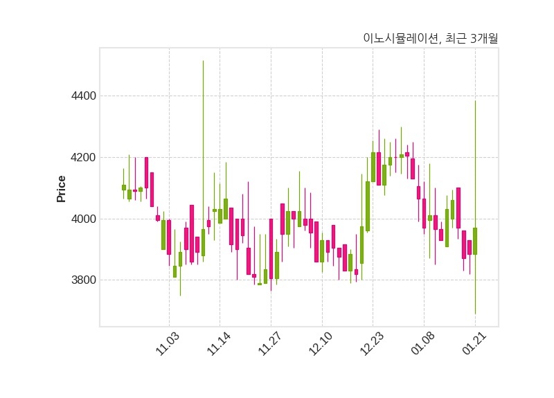 한편, 이노시뮬레이션은 장 마감 이후 해당 기업공시를 발표했으며 오늘 종가가 3,970원, 거래량은 155,251주로, 직전 거래일 대비 85원(+2.19%) 상승했다.