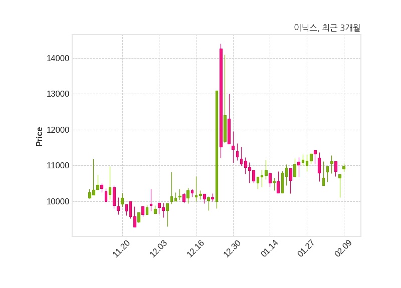 한편, 이닉스는 장 마감 이후 해당 기업공시를 발표했으며 오늘 종가가 10,970원, 거래량은 51,180주로, 직전 거래일 대비 220원(+2.05%) 상승했다.