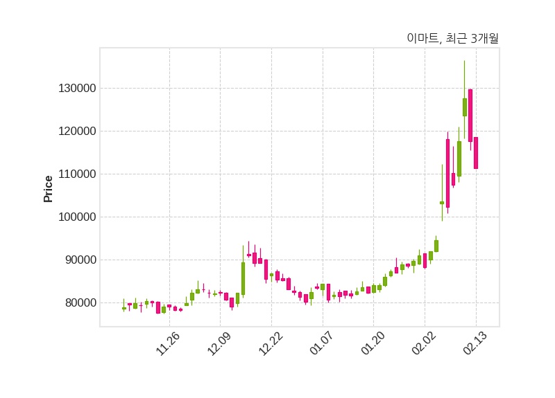이마트는 특별관계자 정용진의 지분율이 28.85%에서 28.56%로 변동했다고 13일 공시했다. 한편, 이마트는 장 마감 이후 해당 기업공시를 발표했으며 오늘 종가가 111,300원, 거래량은 755,487주로, 직전 거래일 대비 6,300원(-5.36%) 하락했다.