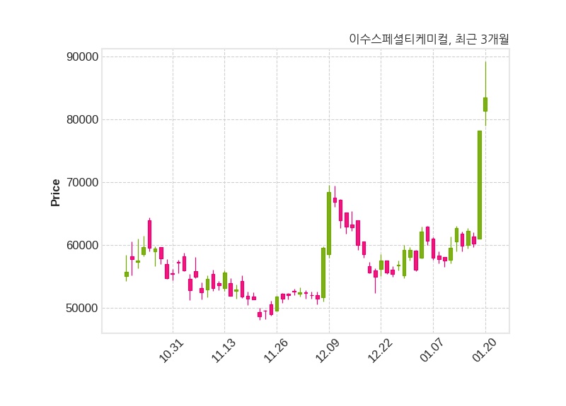 한편, 이수스페셜티케미컬은 장 마감 이후 해당 기업공시를 발표했으며 오늘 종가가 83,500원, 거래량은 3,300,813주로, 직전 거래일 대비 5,300원(+6.78%) 상승했다.
