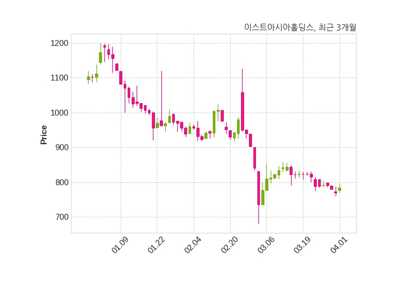 한편, 이스트아시아홀딩스는 장 마감 이후 해당 기업공시를 발표했으며 오늘 종가가 784원, 거래량은 84,344주로, 직전 거래일 대비 14원(+1.82%) 상승했다.