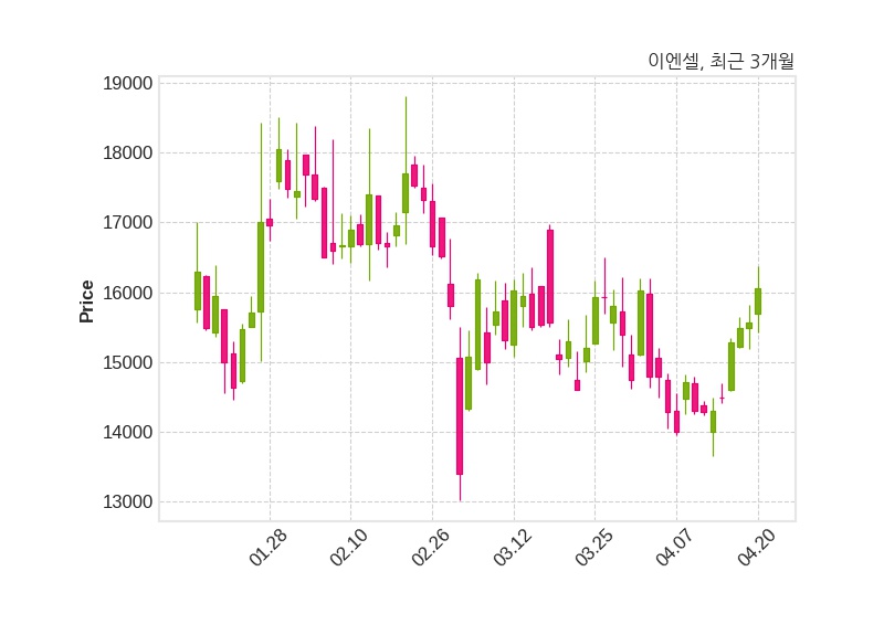 한편, 이엔셀은 장 마감 이후 해당 기업공시를 발표했으며 오늘 종가가 16,050원, 거래량은 319,898주로, 직전 거래일 대비 480원(+3.08%) 상승했다.