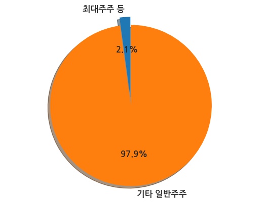현재 최대주주 등 특별관계자의 소유주식은 총 1,576,769주로 발행주식 총수의 2.14%이다.