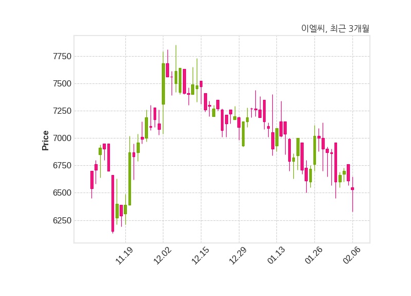 한편, 이엘씨는 장 마감 이후 해당 기업공시를 발표했으며 오늘 종가가 6,530원, 거래량은 22,070주로, 직전 거래일 대비 80원(-1.21%) 하락했다.