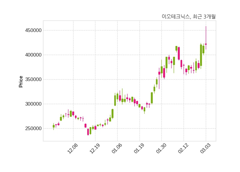 이오테크닉스는 특별관계자 미래에셋자산운용의 지분율이 7.98%에서 6.13%로 변동했다고 03일 공시했다. 한편, 이오테크닉스는 장 마감 이후 해당 기업공시를 발표했으며 오늘 종가가 421,500원, 거래량은 273,404주로, 직전 거래일 대비 3,000원(+0.72%) 상승했다.
