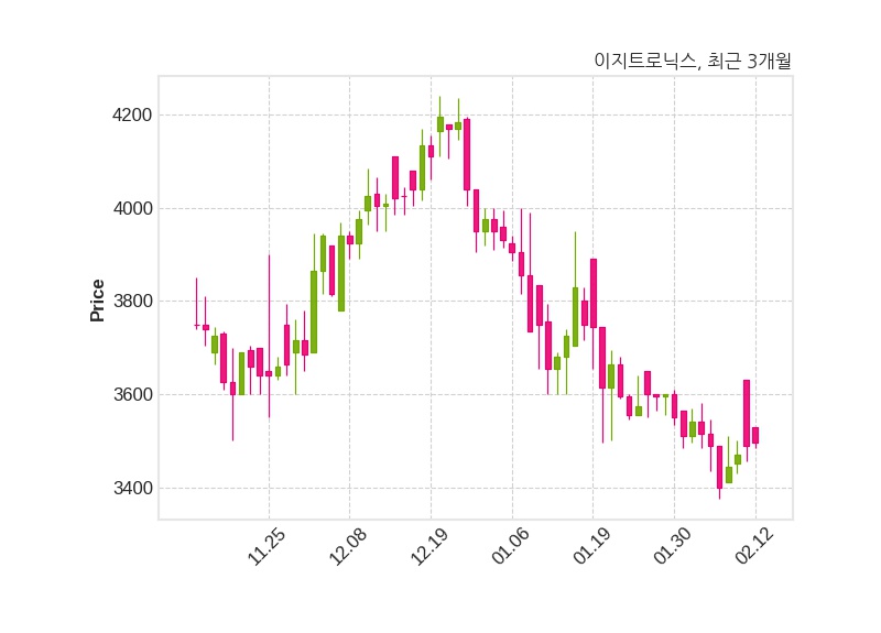 한편, 이지트로닉스는 장 마감 이후 해당 기업공시를 발표했으며 오늘 종가가 3,495원, 거래량은 9,420주로, 직전 거래일 대비 5원(+0.14%) 상승했다.